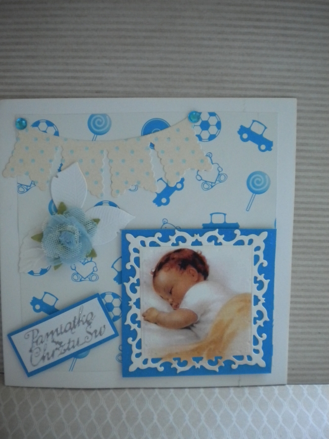 Dwie karteczki na uroczystość chrztu św w kolorach niebieskich , więc myślę że dla chłopców , chociaż ostatnio rozmawiając z klientką na kiermaszu , stwierdziła ze nie ma to znaczenia , więc kazdy towar ma swojego kupca , pozdrawiam