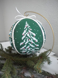 Dziś bombka tez ozdobiona haftem krzyżykowym, ale o znacznie większej średnicy 15 cm, składa sie z czterech kawałków, ciężko było naciągnąć .... bardzo czas mi ucieka , a wam ?